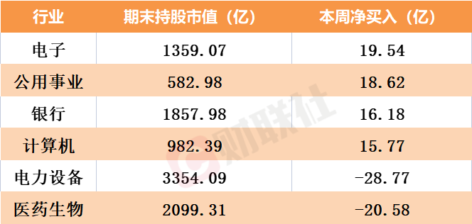 从各行业的资金流向看,周净买额超15亿元的四个板块是电子、公用事业(电力)、银行、计算机(计算机应用);周净卖出额超20亿元的两个板块是电力设备(新能源)、医药生物。