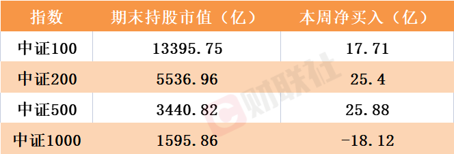 分市场板块看,本周沪市主板整体净买入66.68亿元,深市主板获净买入24.31亿元、创业板遭净卖出22.76亿元。市值分布看,中证200、中证500各获净买入约25亿元,中证100指数成分股标的净买入17.71亿元,中证1000指数成分股标的遭净卖出18.12亿元。